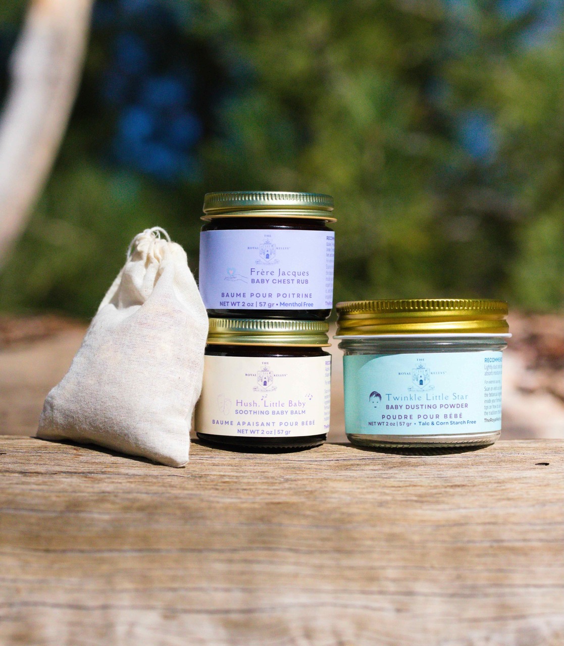 Twinkle Little Star Baby Powder(2 oz) A talc- and cornstarch-free powder made with calendula, chamomile, plantain, fennel and lavender to calm and comfort. Tapioca starch and white kaolin clay absorb moisture to keep baby’s skin soft, dry, and fresh. Perfect for diaper areas and little folds.